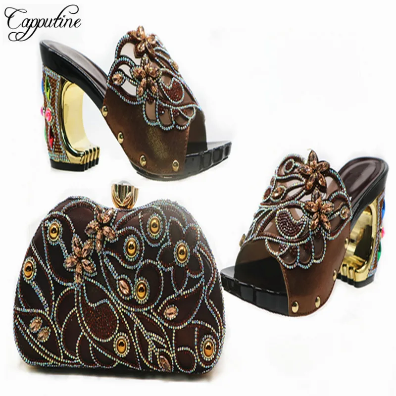 Capputine Nigerian Party Shoes And Bag Sets Italian Fashion Decorated With Rhinestone Shoes And Bag Set For Party Size 38-42